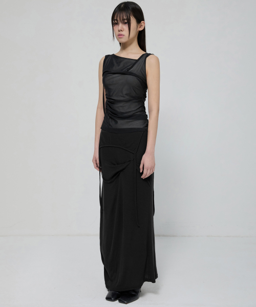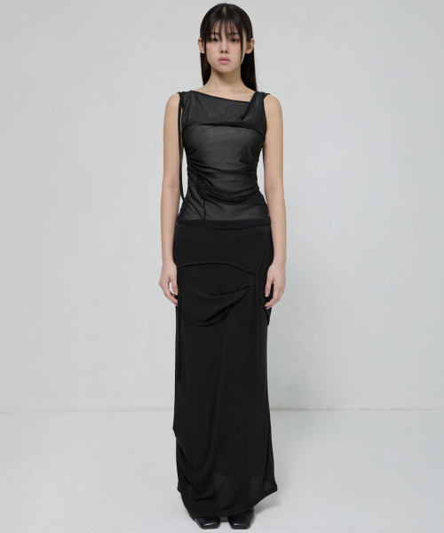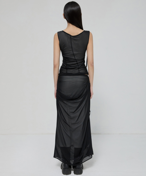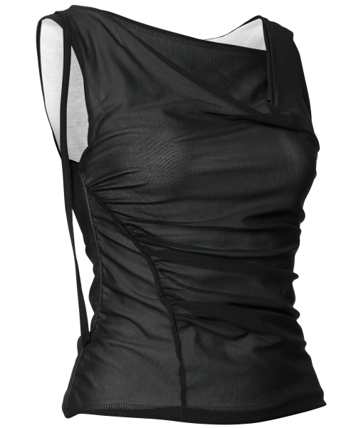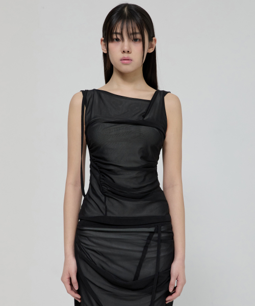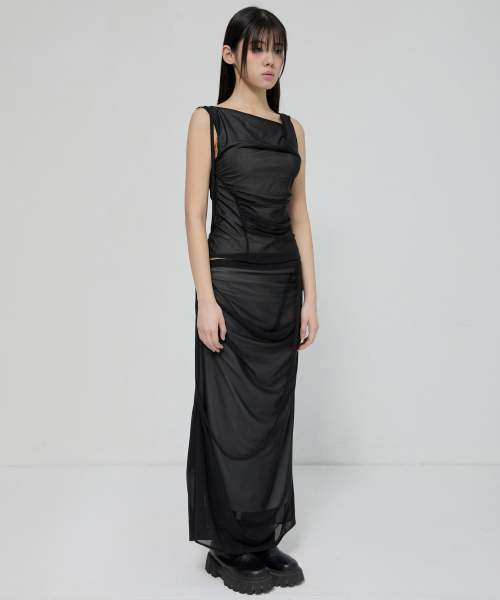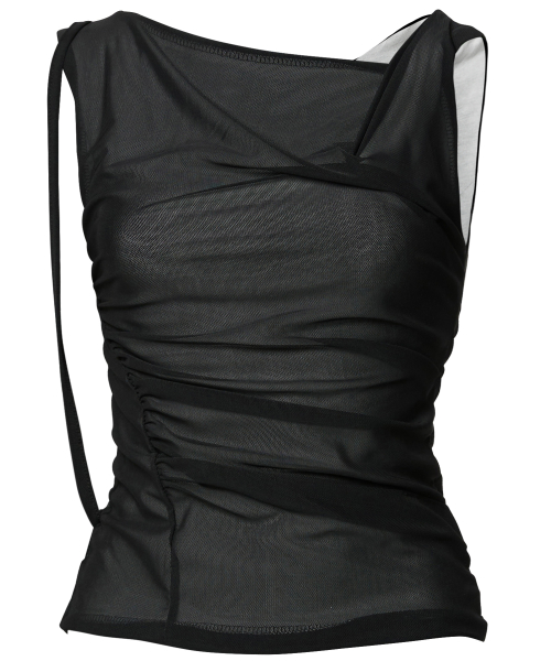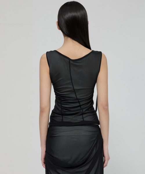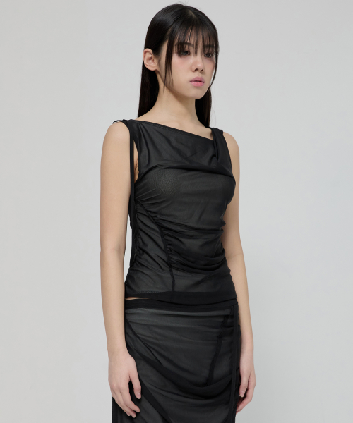 Draped Mesh Layered Sleeveless (FL-116_Black)