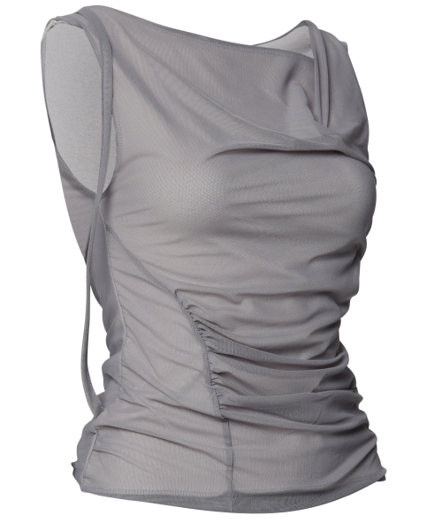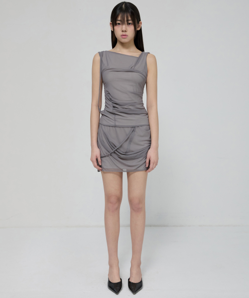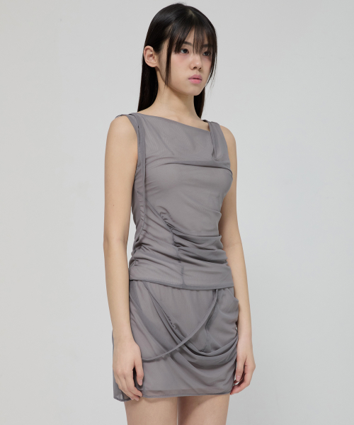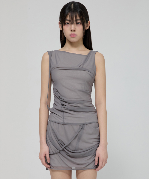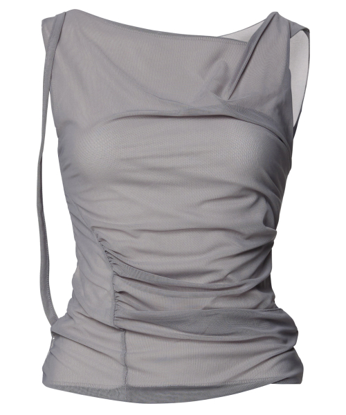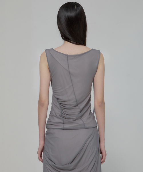 Draped Mesh Layered Sleeveless (FL-116_Gray)