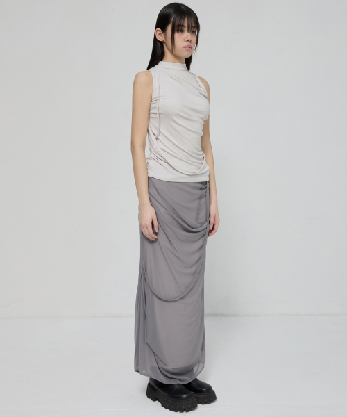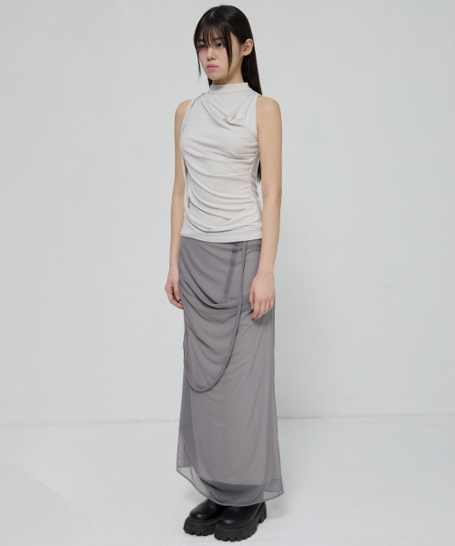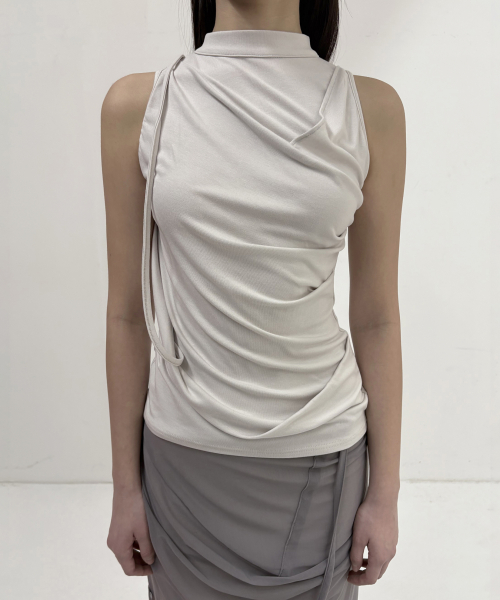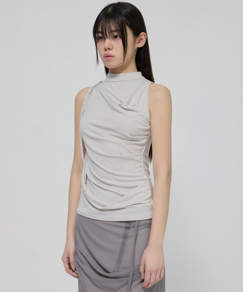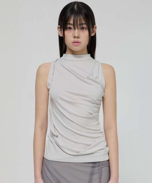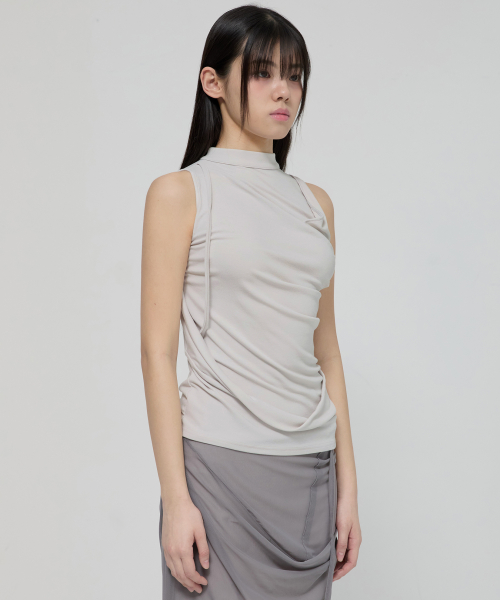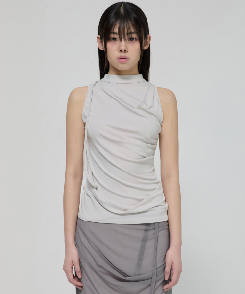 Draped Sleeveless Top (FL-135_Cloud White)