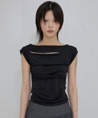 Asymmetrical Draped Roll-Up T-Shirt (FL-165_Black)