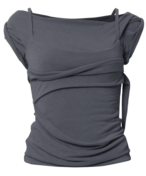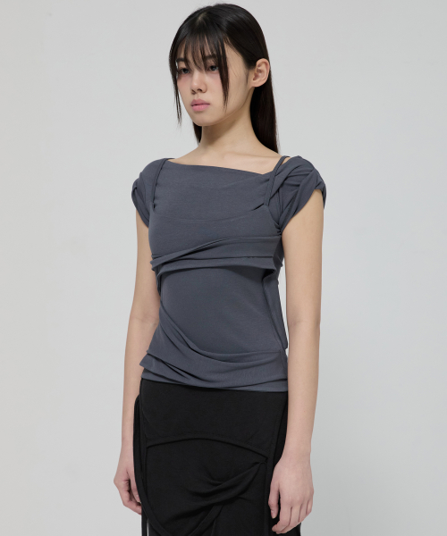 Layered Bustier T-Shirt (FL-108_Charcoal)