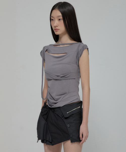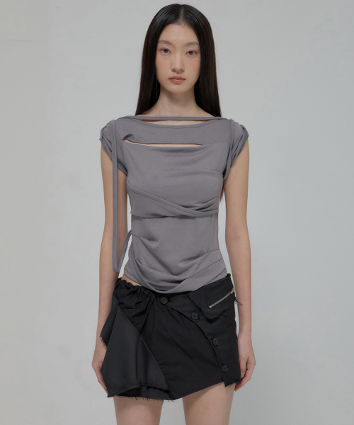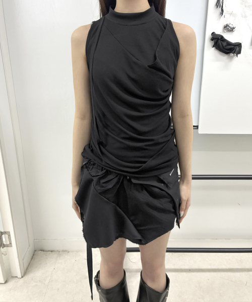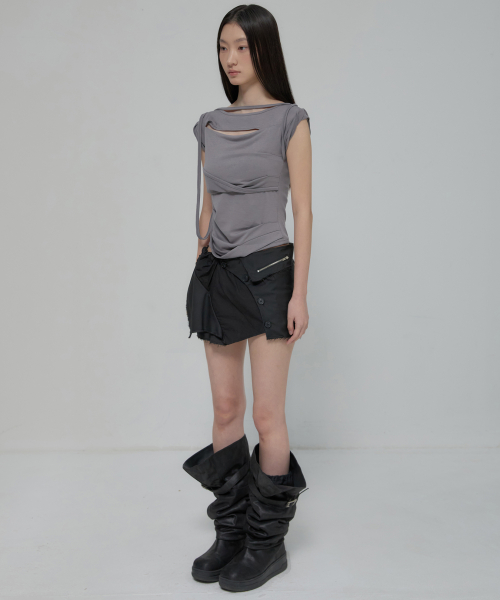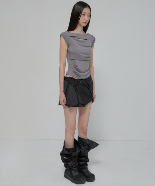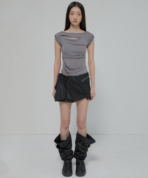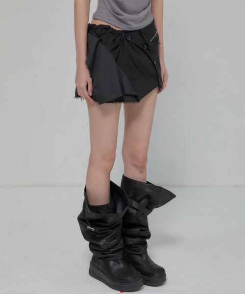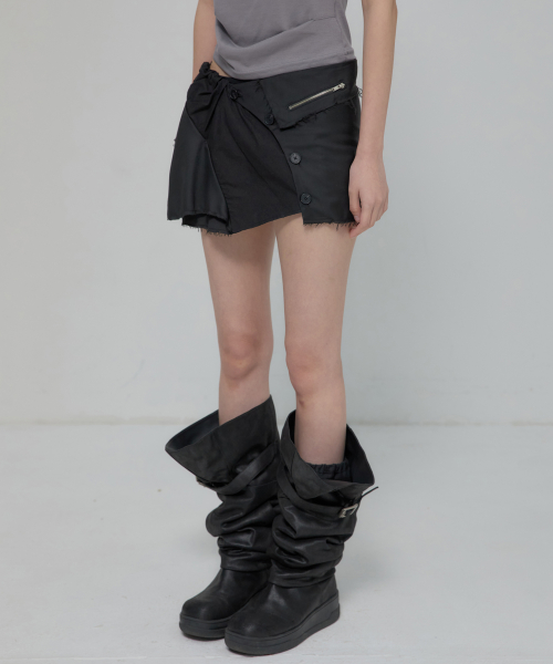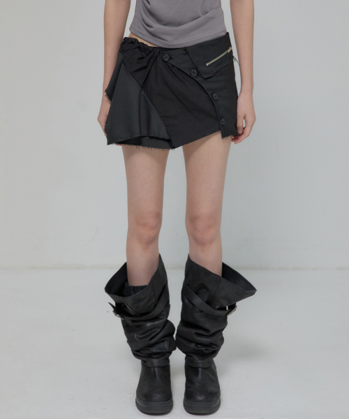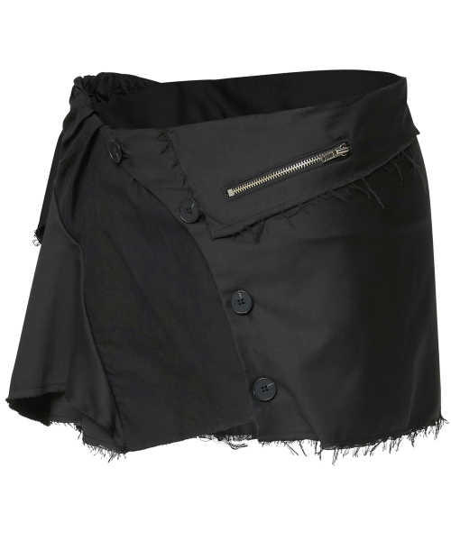 Asymmetrical Layered Mini Skirt (FL-267_Black)
