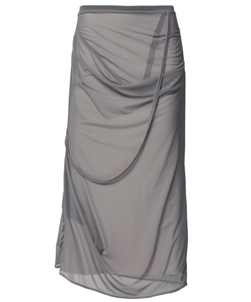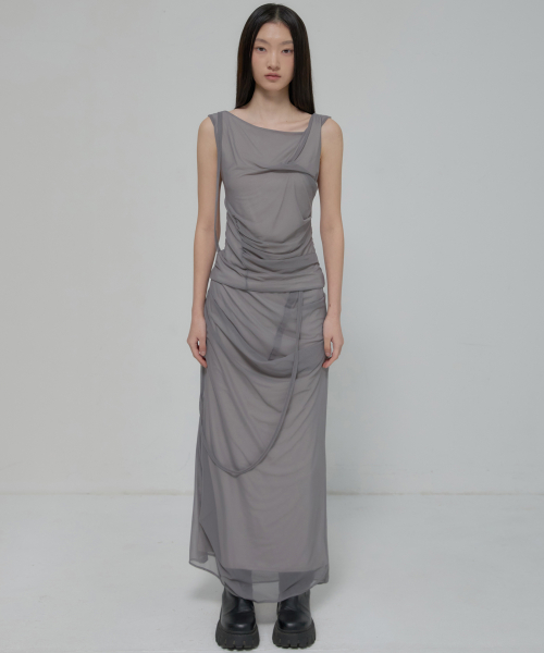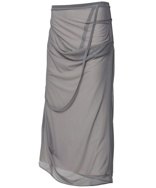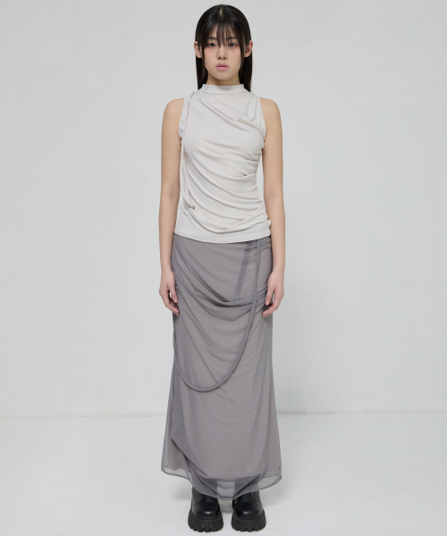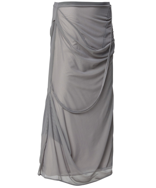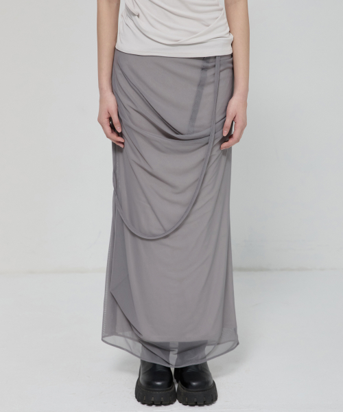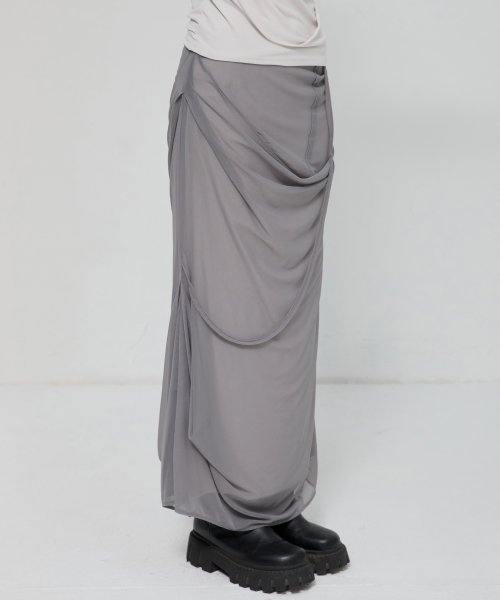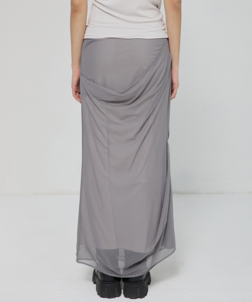 Draped Mesh Layered Long Skirt (FL-264_Gray)
