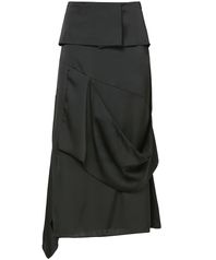 Asymmetrical Draped Layered Long Skirt (FL-256_Charcoal)