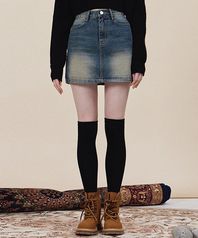 록시 틴 워싱 미니 데님 스커트_2color
