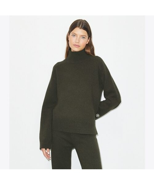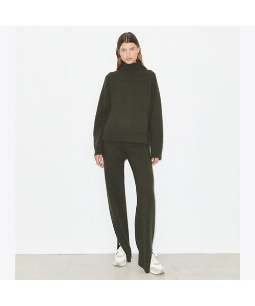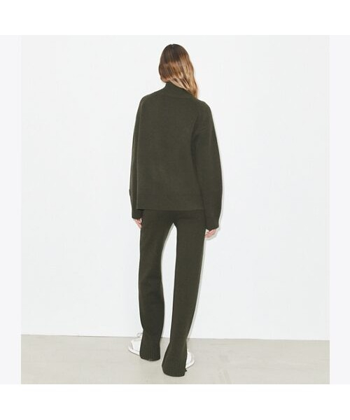 긴 소매와 기장이 특징인 메리노 울 터틀넥 스웨터입니다. 메리노 울 소재로, 터틀넥 부분이 목을 포근하게 감싸주며, 분위기 있는 톤다운 된 카키 색상이 고급스러움을 더합니다. 옆면에 트임과 앞 뒤 길이 차이가 디자인적 요소를 더하며, 여유 있는 실루엣으로 클래식한 느낌을 더합니다.
