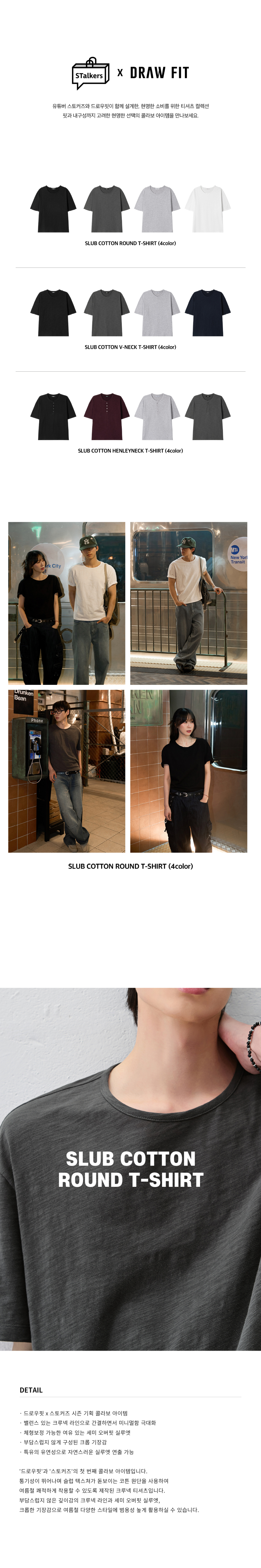 [스토커즈X드로우핏] 슬럽 코튼 라운드 티셔츠 [4color]