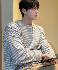 콘트라스트 멀티 스트라이프 롱 슬리브 [MELANGE GREY]