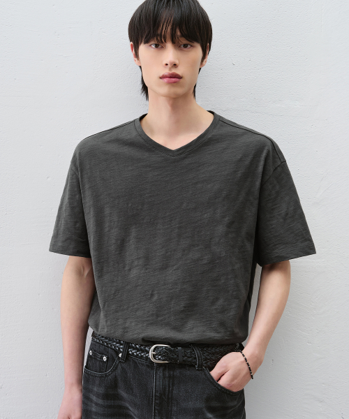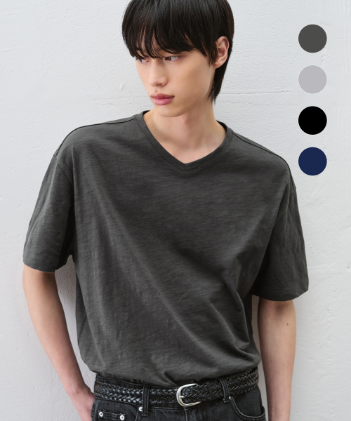 [스토커즈X드로우핏] 슬럽 코튼 브이넥 티셔츠 [4color]