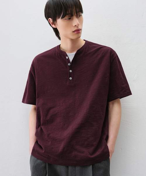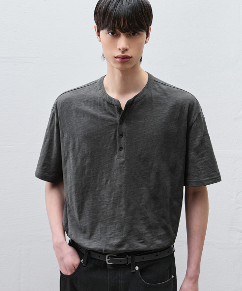 [스토커즈X드로우핏] 슬럽 코튼 헨리넥 티셔츠 [4color]