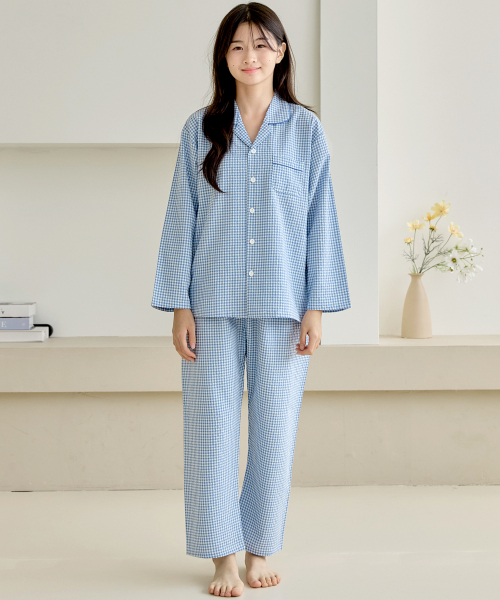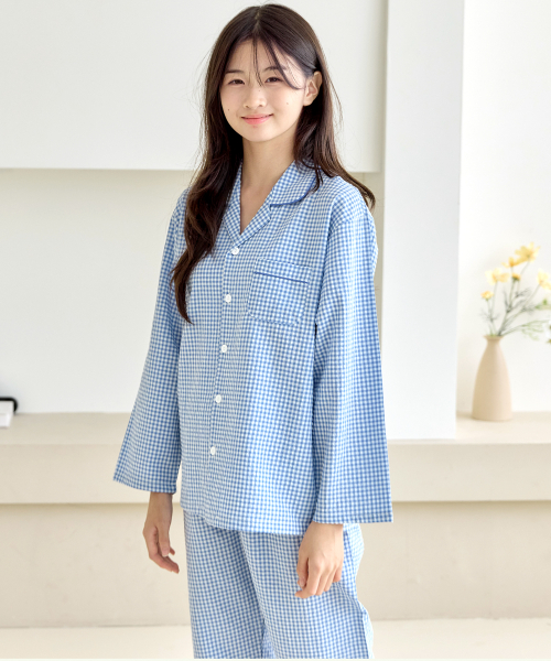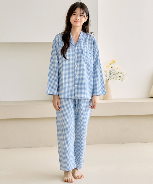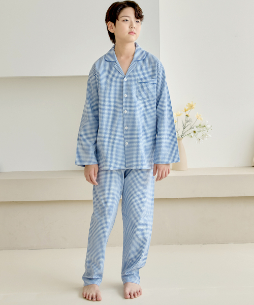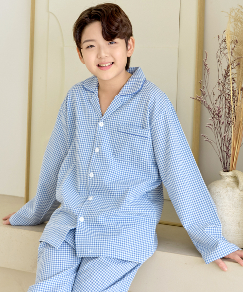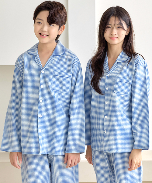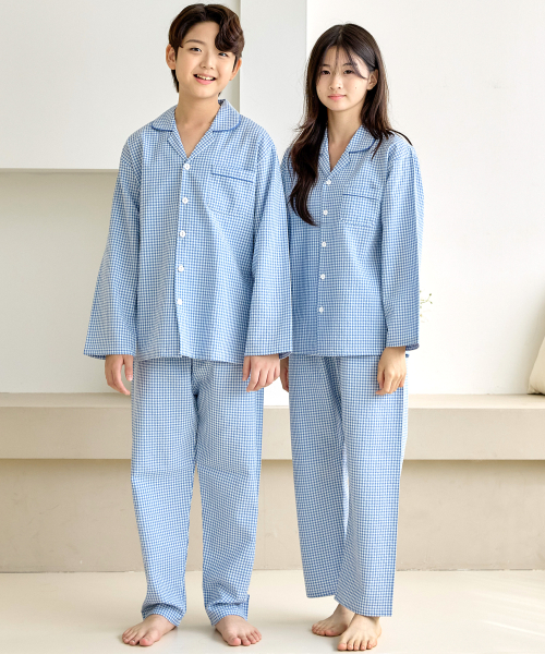 핑코코 2088 블루체크 긴팔 주니어 잠옷 파자마세트