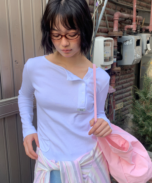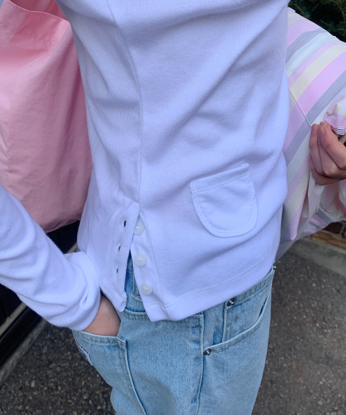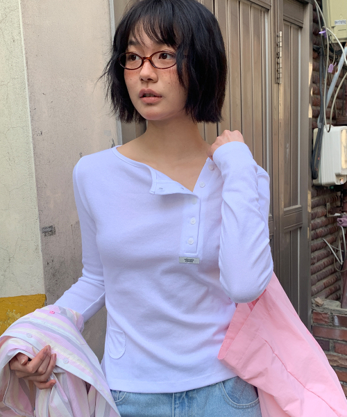 ASYMMETRIC BUTTON MINI POCKET LONG SLEEVE WHITE