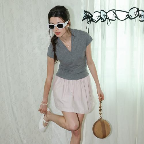 DD_Shirred waist mini skirt_PINK