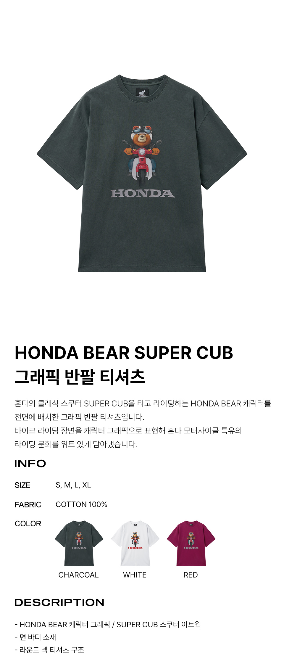 Super Cub Ride Bear Short Sleeve Charcoal