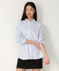 우먼즈 스트라이프 릴렉스드 옥스포드 셔츠 [화이트/스카이 블루]
