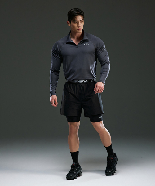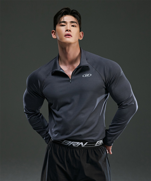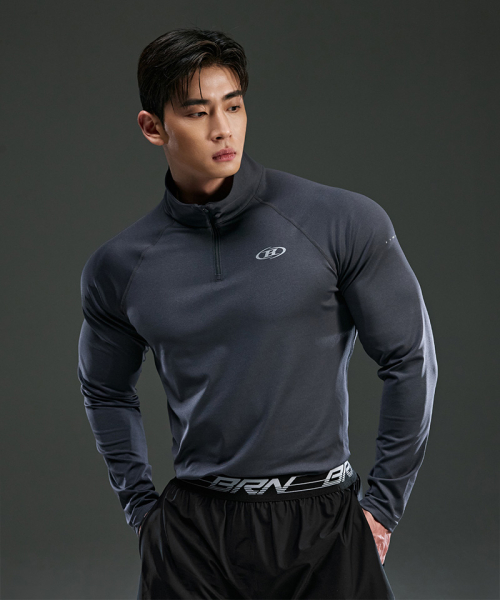 * 심볼 B 세미 머슬핏 하프 집업 롱 슬리브