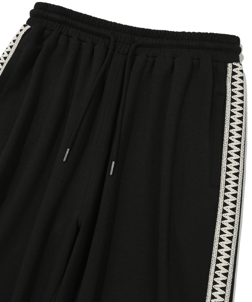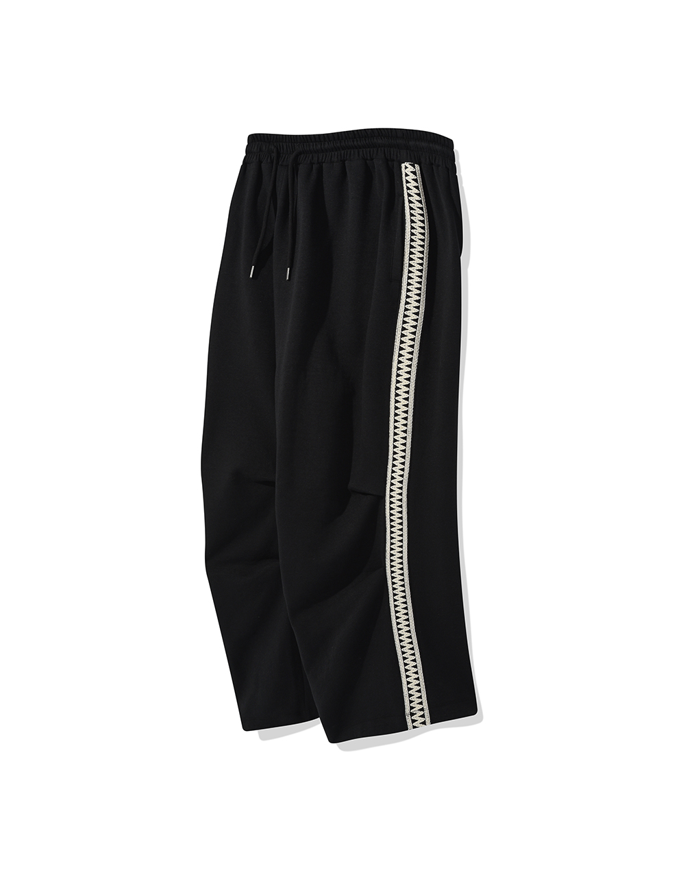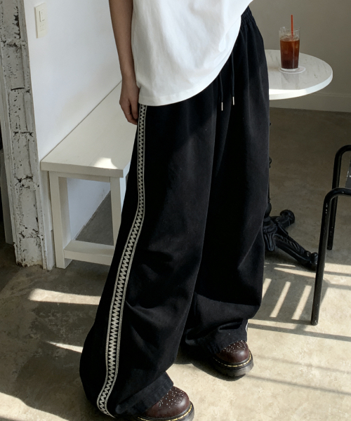 프리미엄 사이드 자수 라인 와이드 트랙 팬츠[블랙]