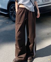 프리미엄 사이드 자수 라인 와이드 트랙 팬츠[브라운]