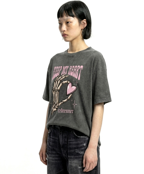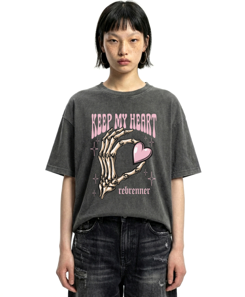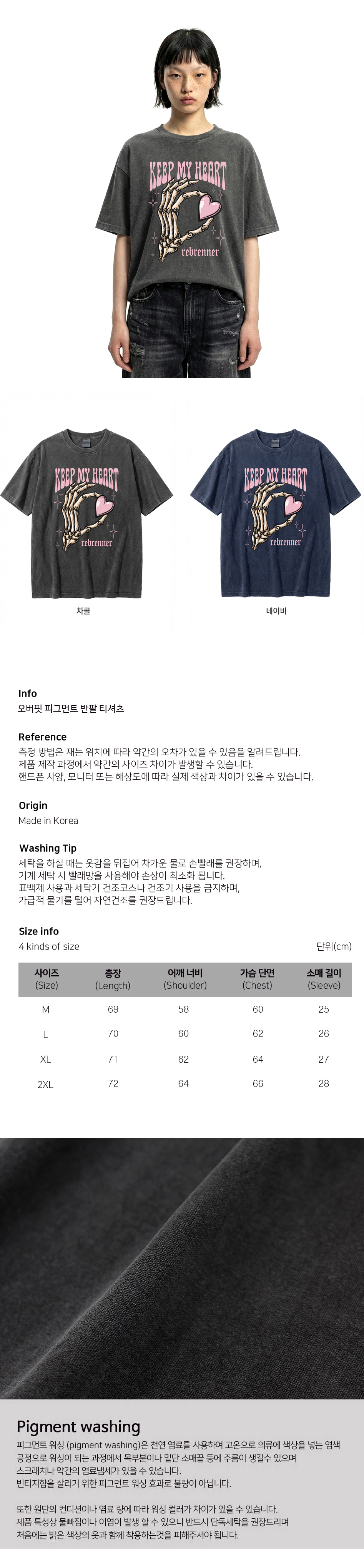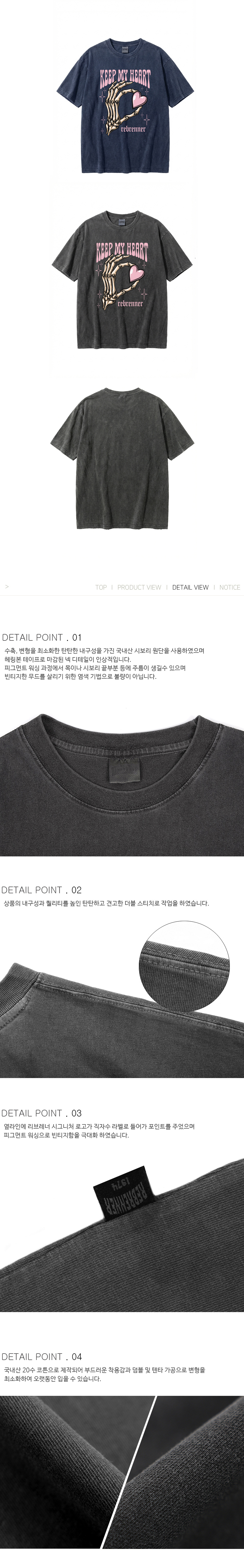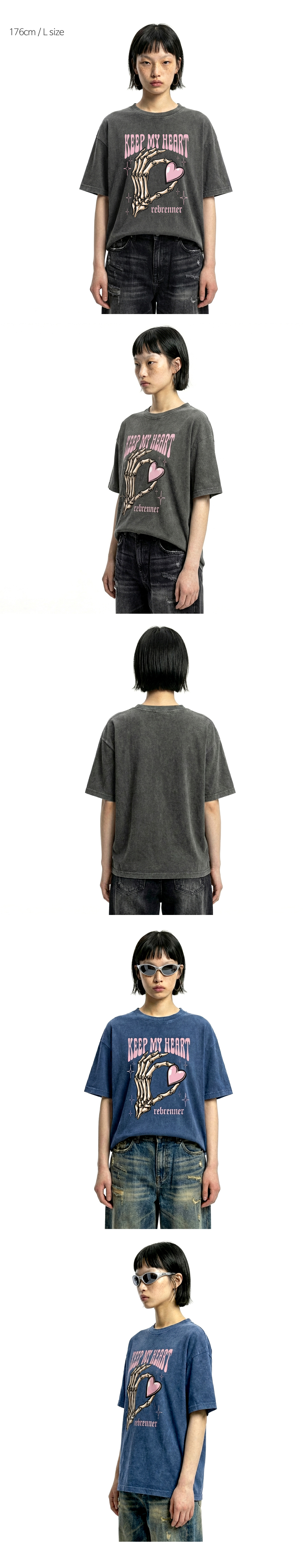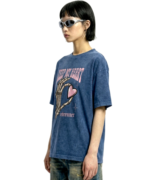 DTF 마이하트 피그먼트 반팔티셔츠 네이비