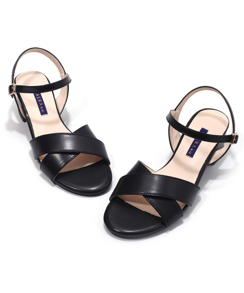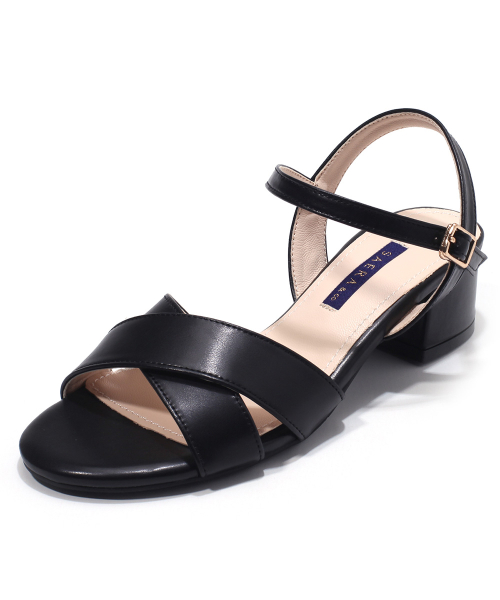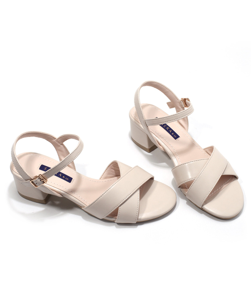 와이드 크로스 앵클 스트랩 미들힐 샌들 K56S402