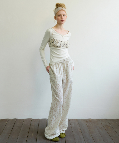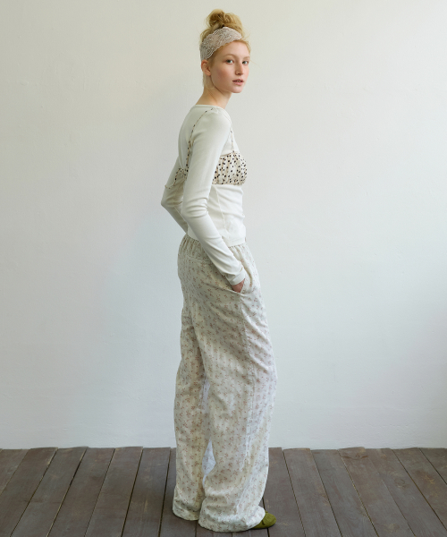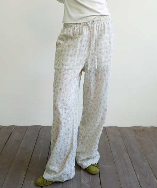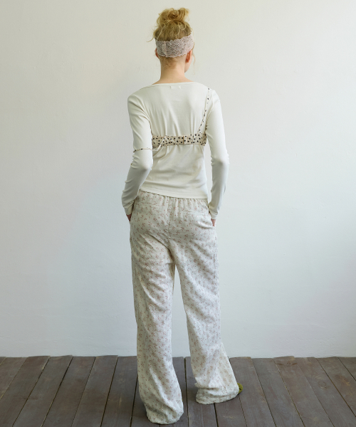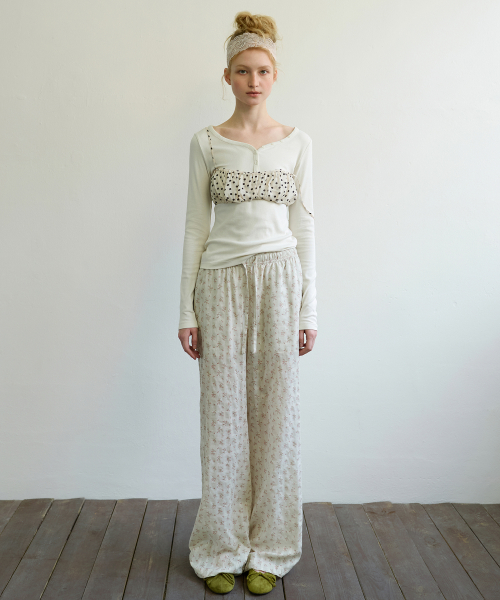 FLORAL STRIPE LOUNGE PANTS - BEIGE