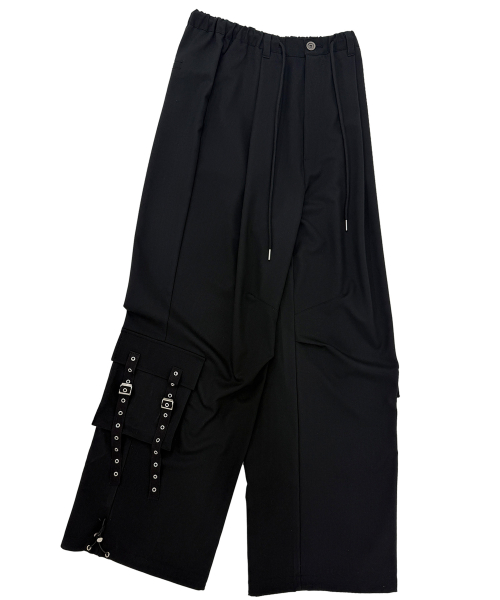 밴딩 핀턱 카고팬츠. 핀턱과 다트, 아웃포켓등을 가미.