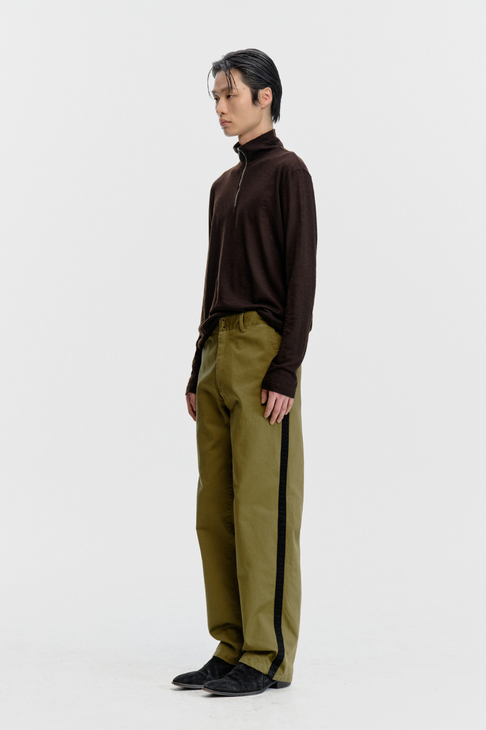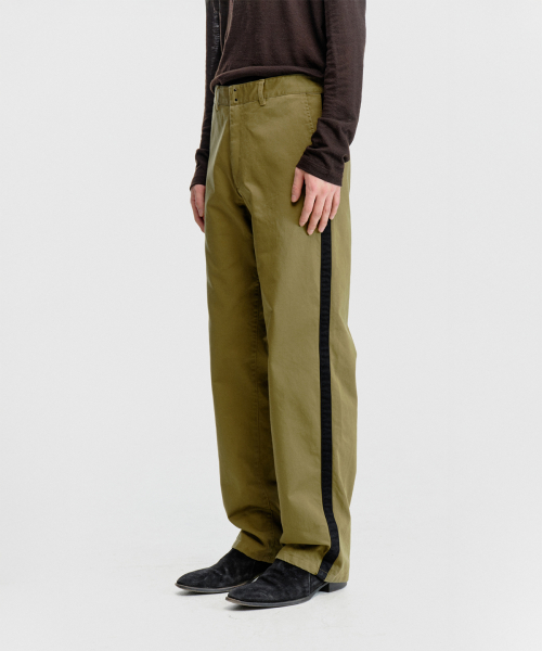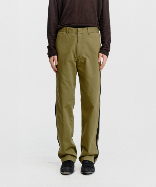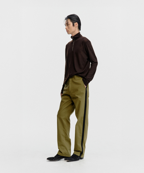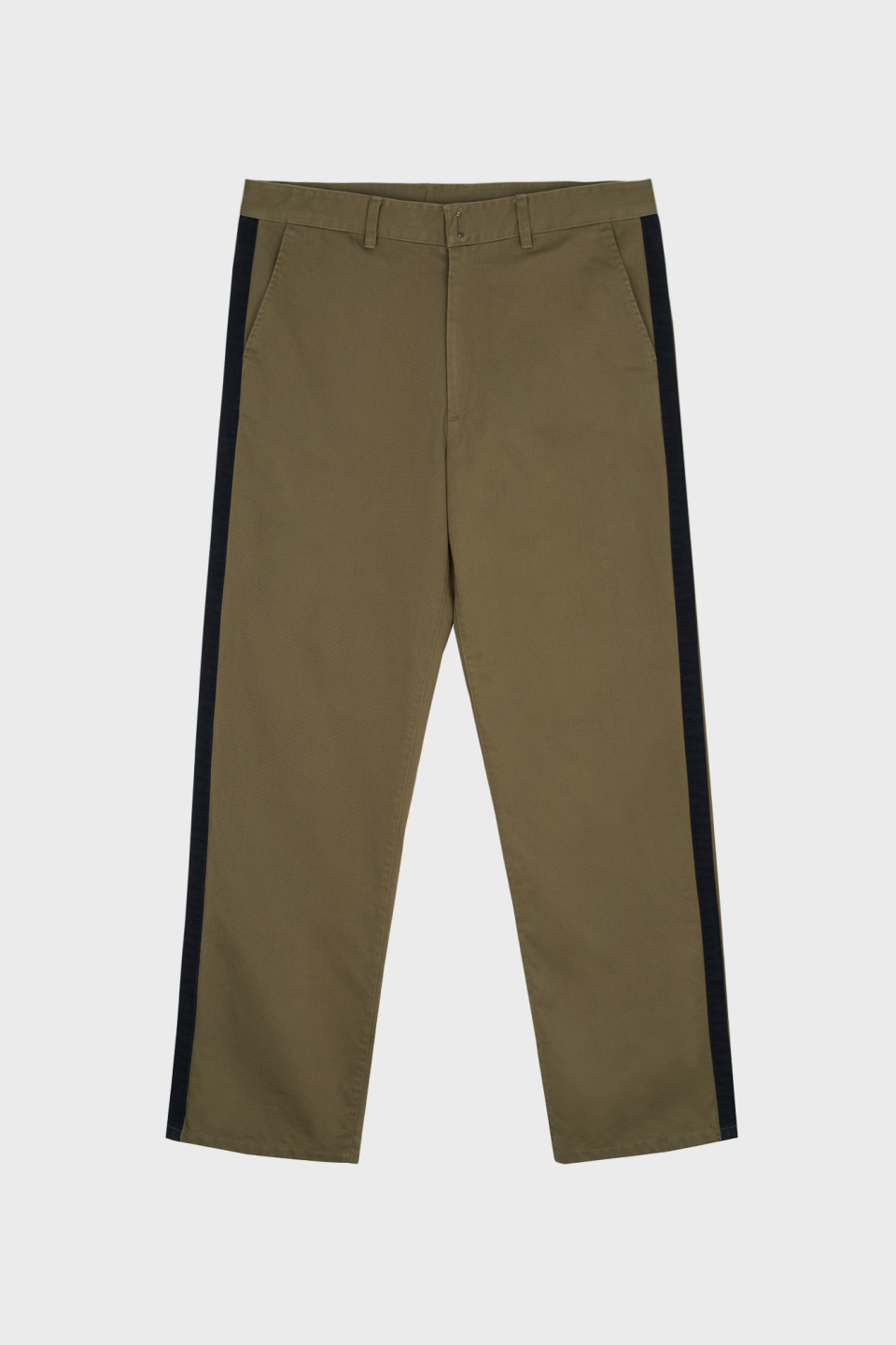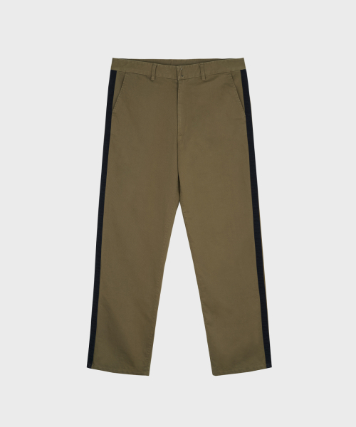 스트레이트 핏으로 제작되어 안정감 있게 떨어지며, 옆선을 따라 이어지는 사이드 테이프 디테일이 있습니다.