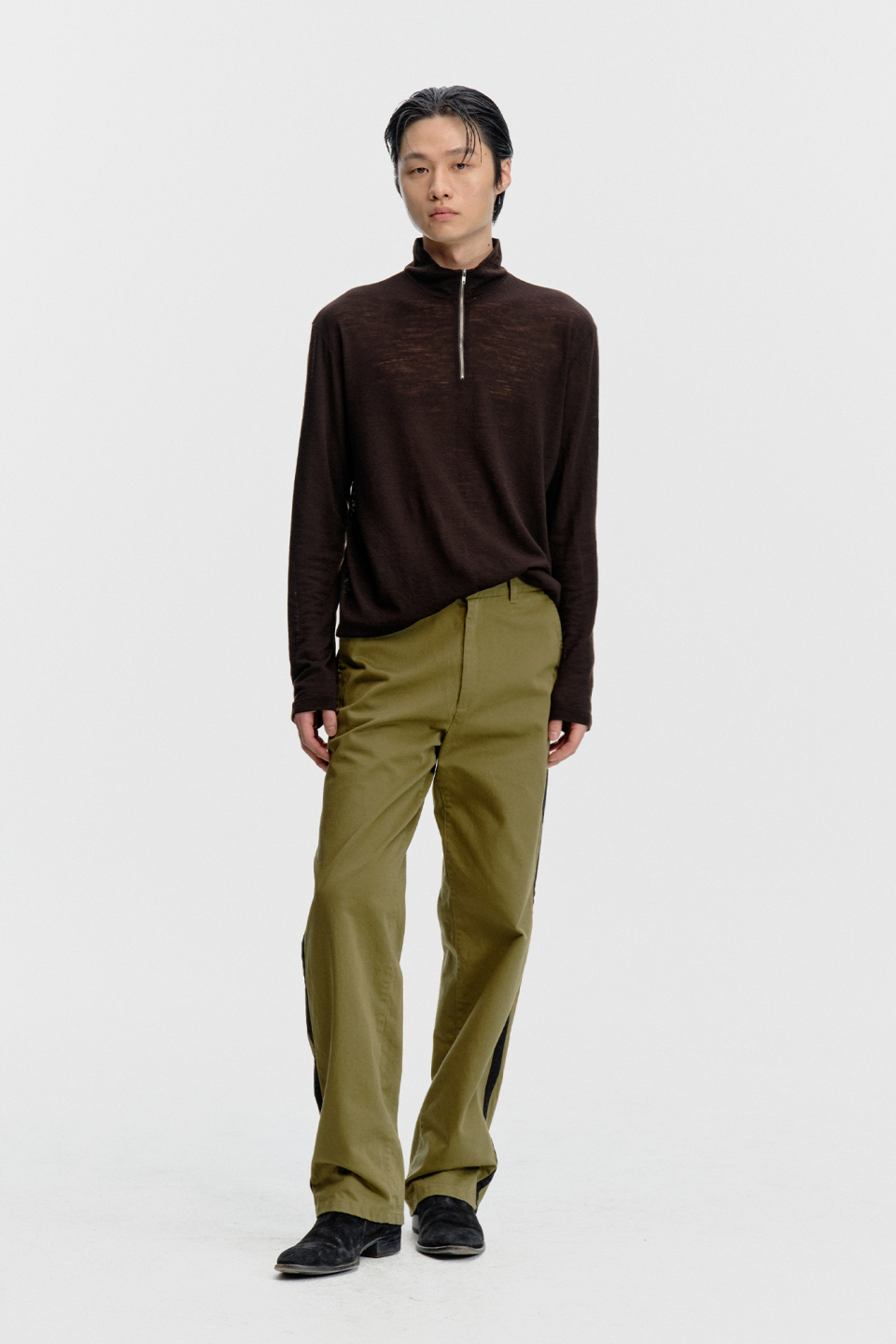 밀도 높은 조직감이 돋보이는 원단으로 탄탄한 물성을 지니며, 워싱 이후에도 결이 살아 있는 고급스러운 텍스처를 유지합니다.