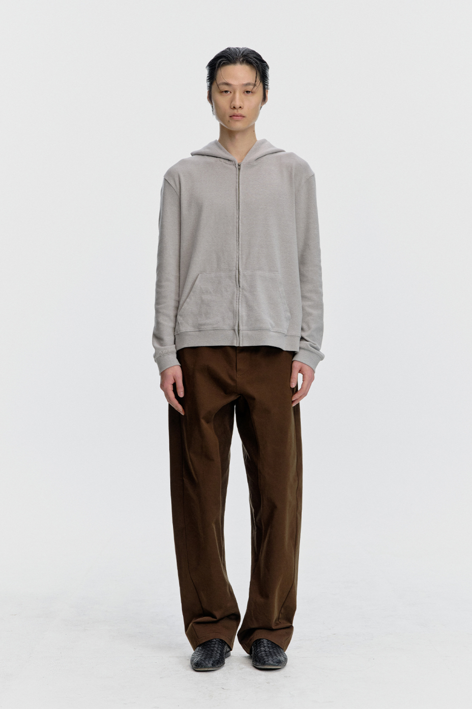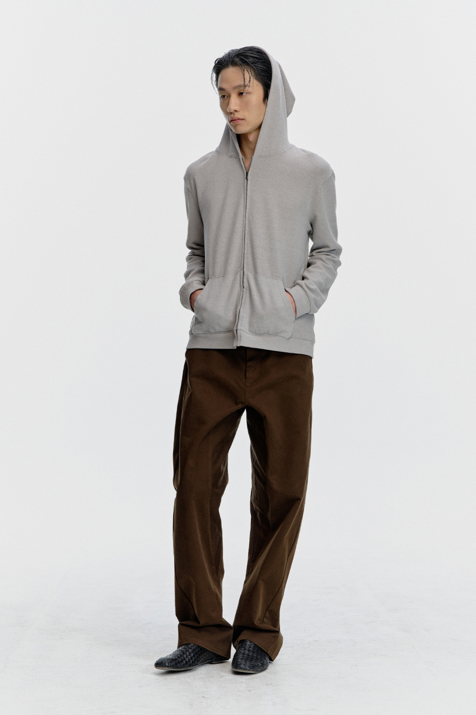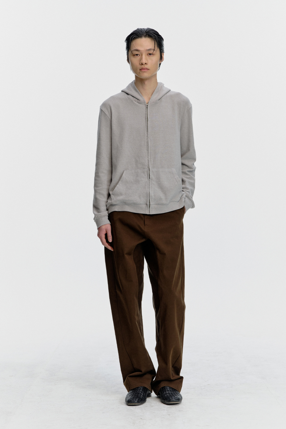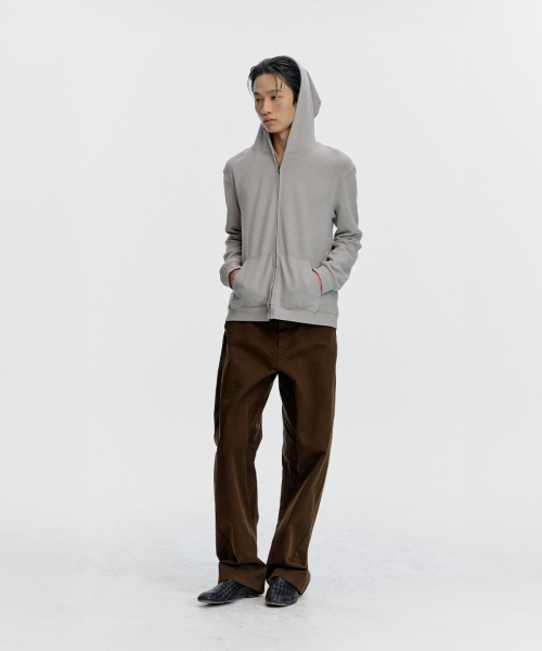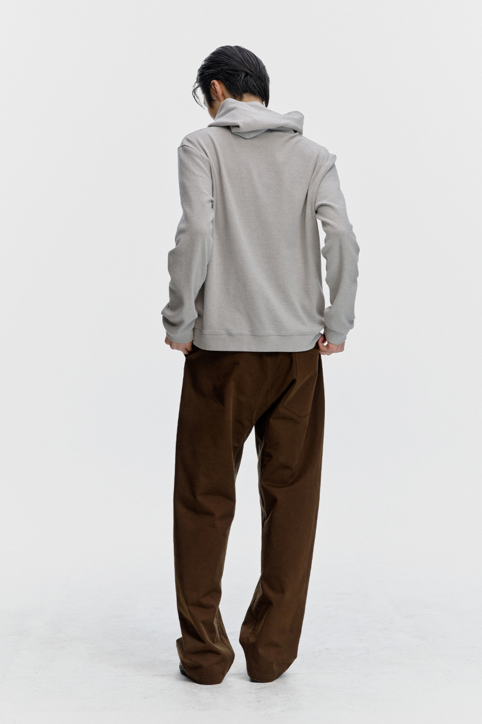 여유로운 핏을 기반으로 밑단으로 갈수록 테이퍼드하게 떨어지는 실루엣을 완성했습니다.