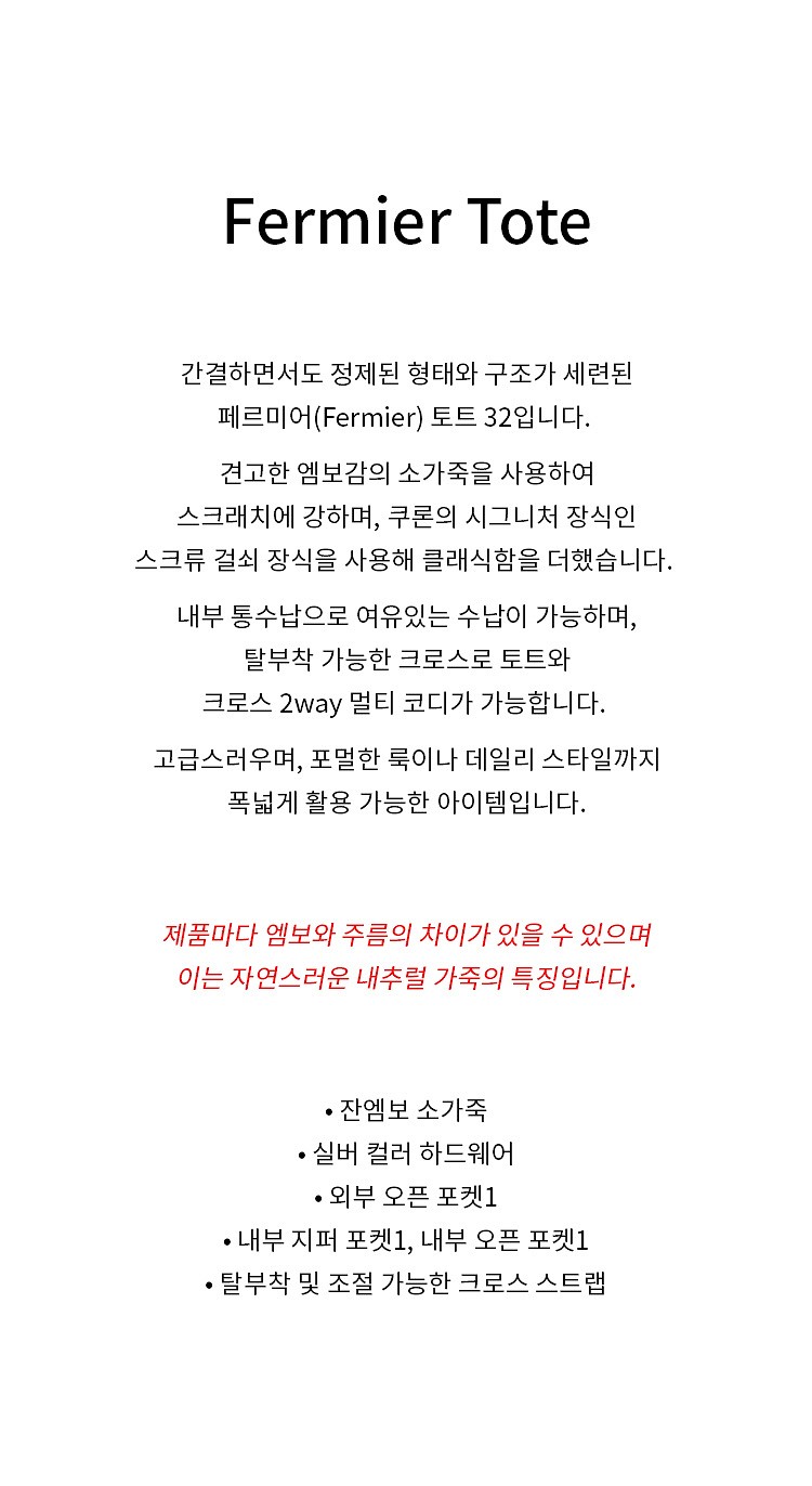 * 소재:천연가죽(소) / 폴리에스터 80% 면 20%(안감)