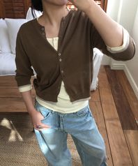 에센셜 레이어드 하프 니트 가디건-브라운