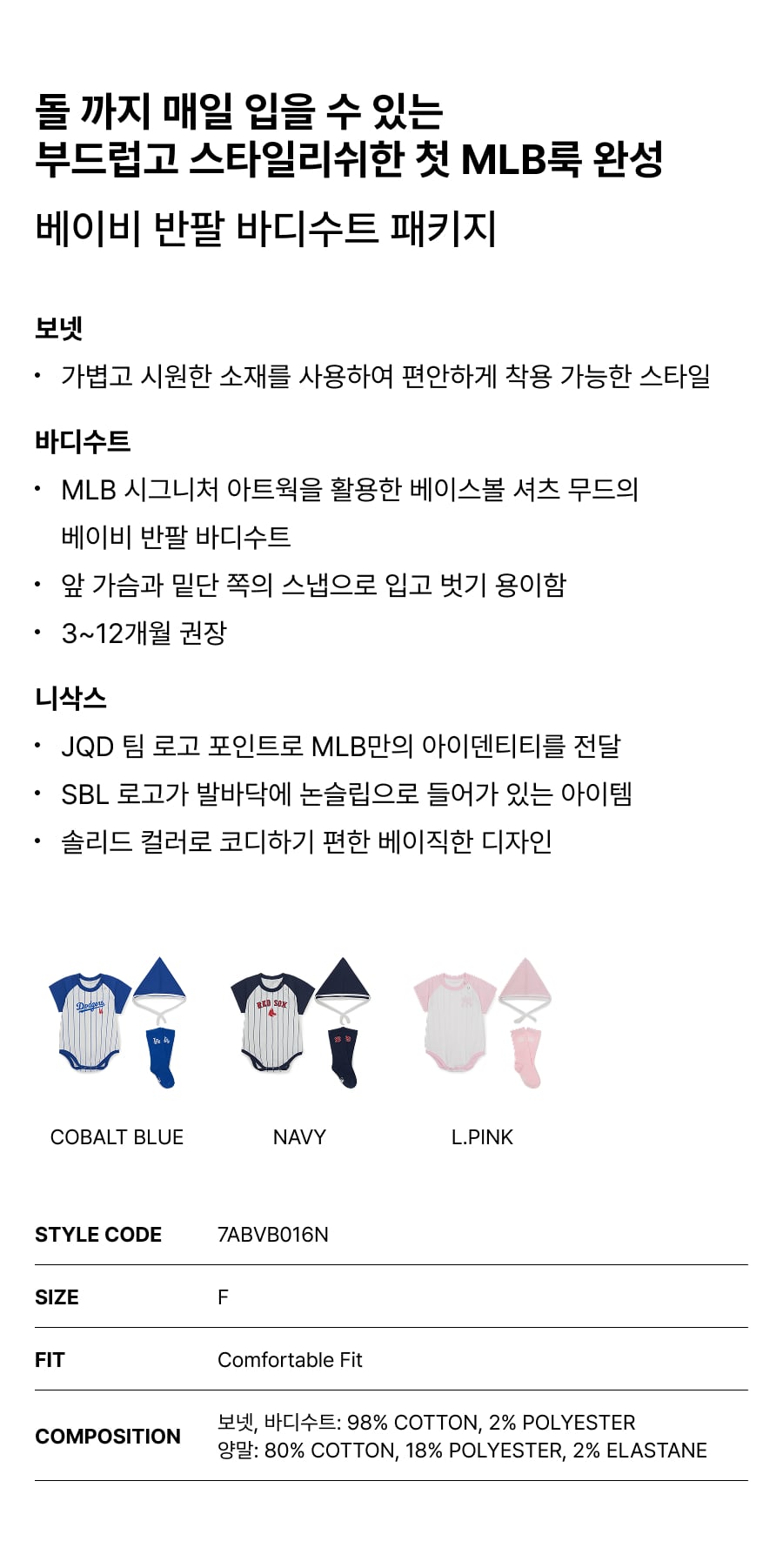 컬러: L.Pink 상품명: 베이비 반팔 바디수트 패키지 소재: 겉감 면98% 겉감 폴리에스터2% 배색 면98% 배색 폴리에스터2% 부속 면95% 부속 폴리우레탄5% 품번: 7ABVB016N-50PKL