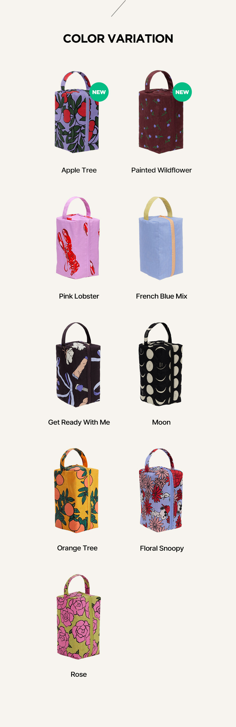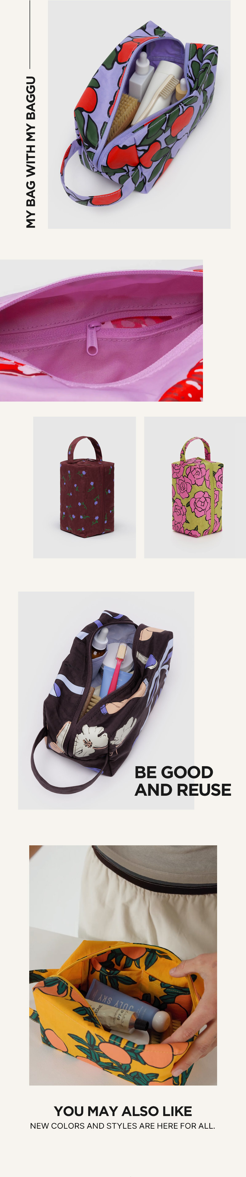 바쿠(BAGGU)는 2007년 미국 뉴욕 브루클린에서 창립된 브랜드로, 일회용 비닐 사용을 줄이자는 취지에서 시작된 친환경 브랜드입니다. 모든 사람들이 바쿠의 가방을 한 개씩 갖게 하겠다는 회사의 비전처럼 합리적인 가격과 데일리 룩에 어울리는 화사한 디자인, 튼튼한 소재로 만들어 실용적인 가방을 추구합니다.