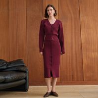 YY_Gentle ribbed wine knit skirt