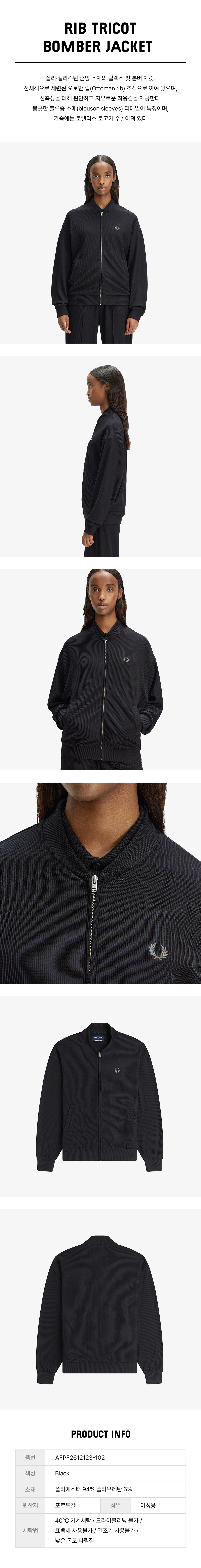 [womens] 립 트리코트 보머 재킷 - 블랙 AFPF2612123-102