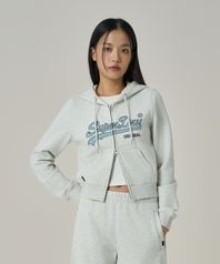 W 빈티지 로고 크롭 후드집업 라이트 그레이