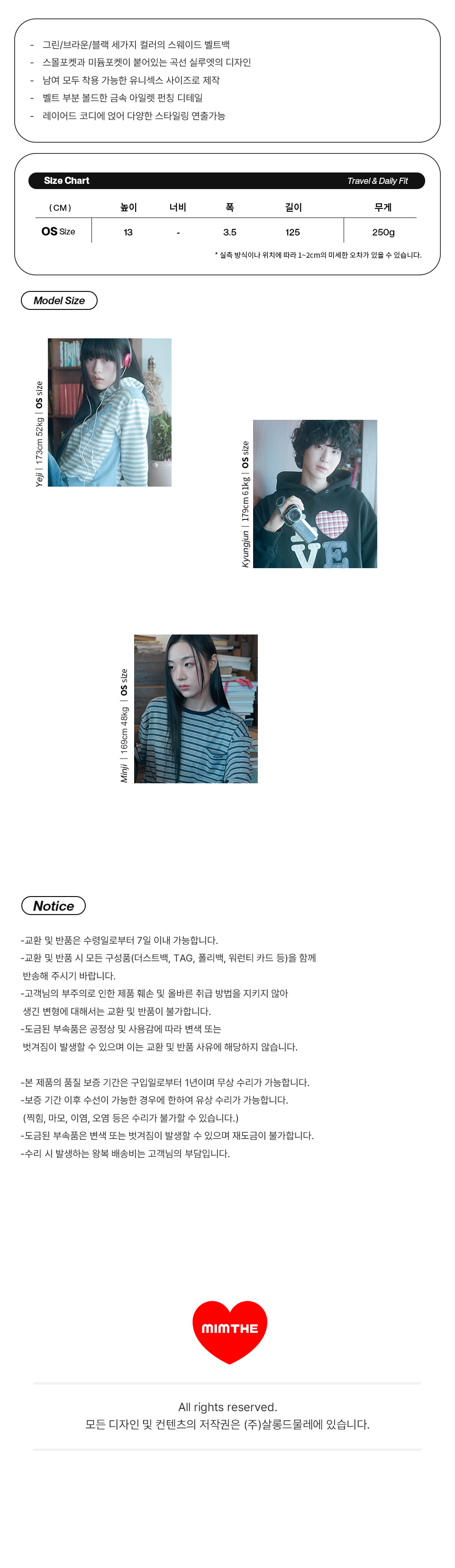 밈더워드로브(MIMTHEWARDROBE)는 'WARDROBE LOVE. Our story begins in the wardrobe of LOVE(우리의 이야기는 사랑으로 가득 찬 옷장에서 시작된다)'라는 슬로건 아래, 사랑으로 연결되는 모든 존재를 상징하는 HEART M LOGO를 사용해 세상에 던지고 싶은 메시지를 전하는 브랜드입니다.