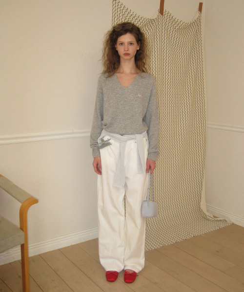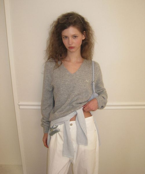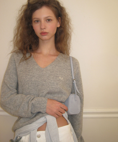 - 깊지 않은 브이넥 라인으로 쇄골을 자연스럽게 드러내 여리한 무드 연출