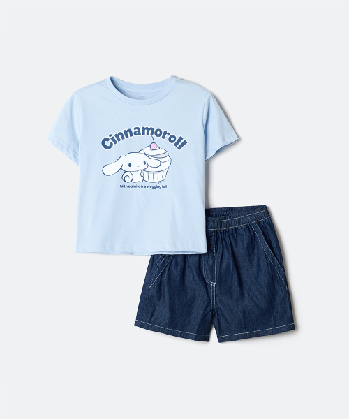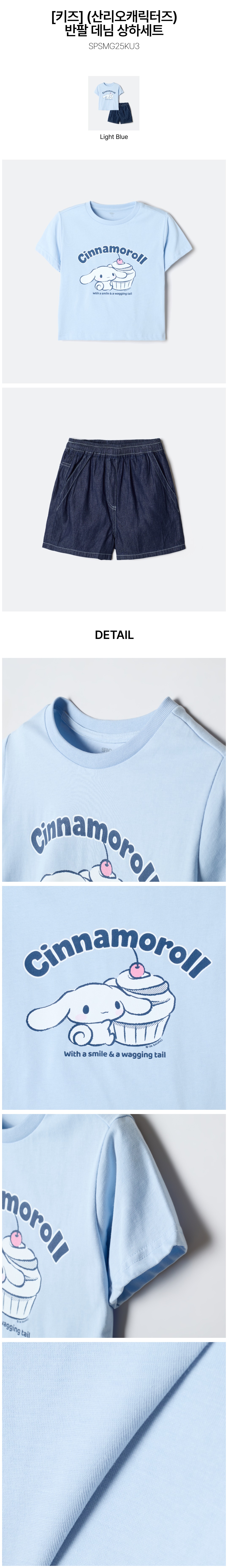 [키즈] (산리오캐릭터즈) 반팔 데님 상하세트(LIGHT BLUE)_SPSMG25KU3