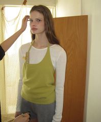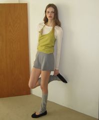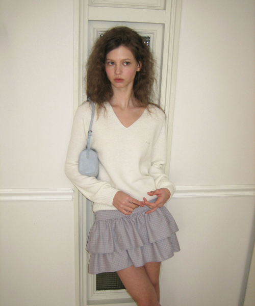 - 깊지 않은 브이넥 라인으로 쇄골을 자연스럽게 드러내 여리한 무드 연출
