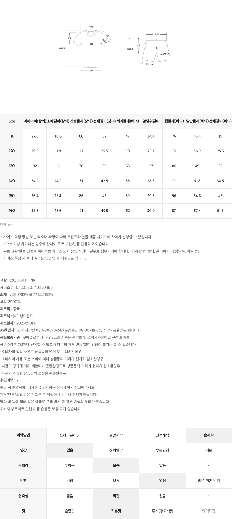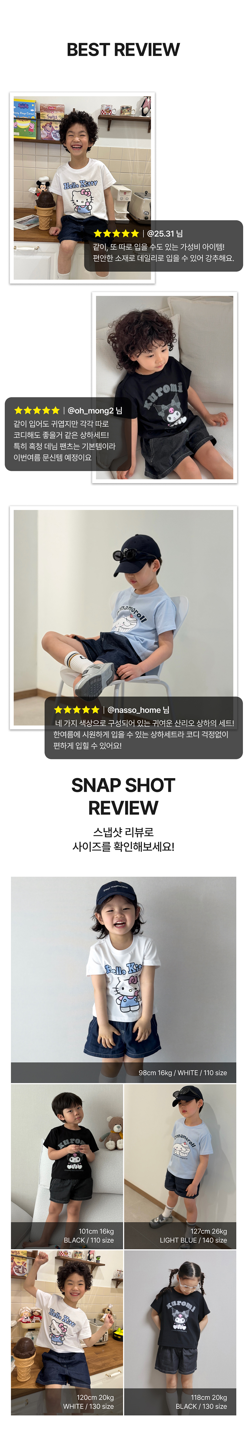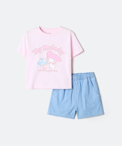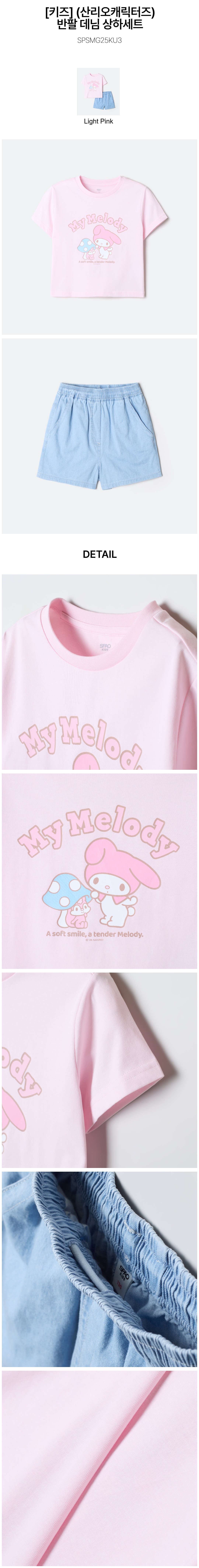 [키즈] (산리오캐릭터즈) 반팔 데님 상하세트(LIGHT PINK)_SPSMG25KU3