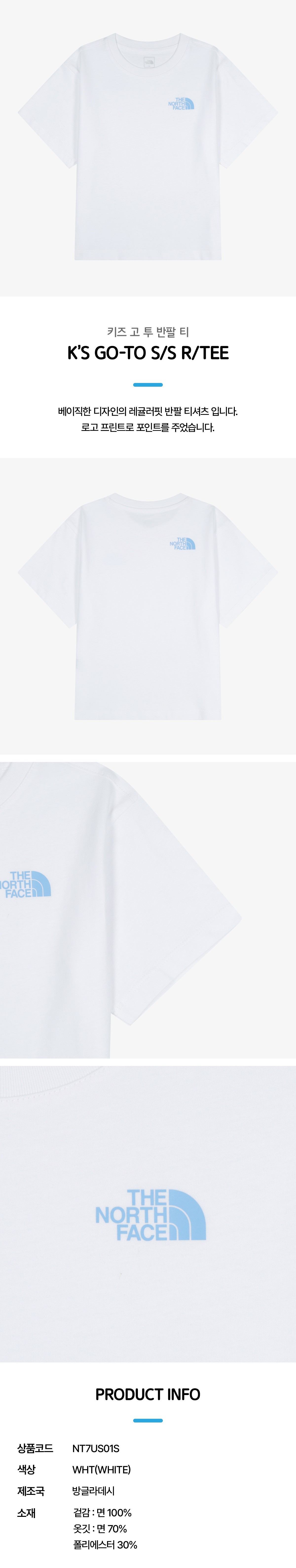 키즈 고 투 반팔 티 NT7US01S_WHT