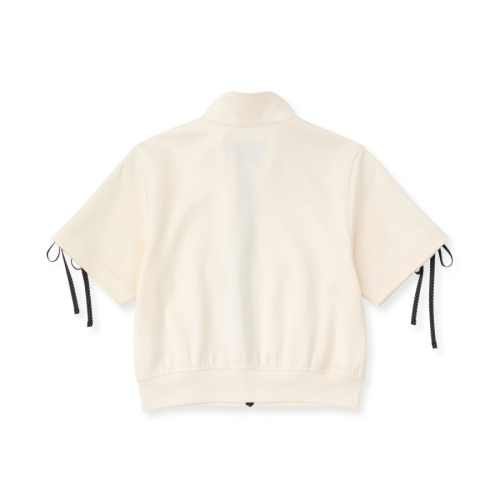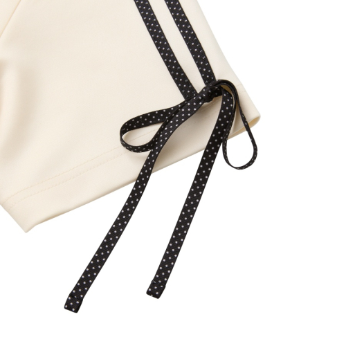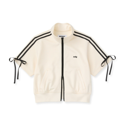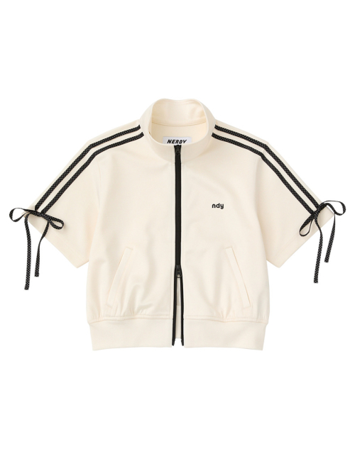 도트 리본 세미크롭 반팔 트랙 탑 크림
