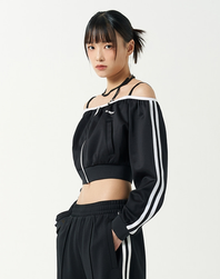 우먼스 오프숄더 NY 트랙 탑 블랙