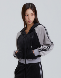 우먼스 벨로아 후디 트랙 탑 (블랙/스카이블루/브라운)