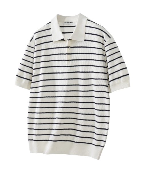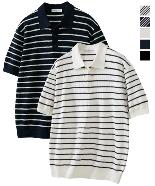 [2PACK]라이크린넨 크로쉐 카라 스트라이프 반팔 니트 5COLOR
