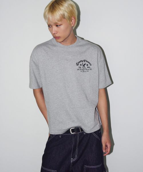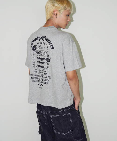 카운티 플라워 크롭 반팔티 그레이