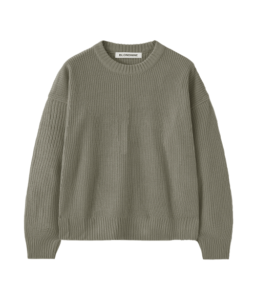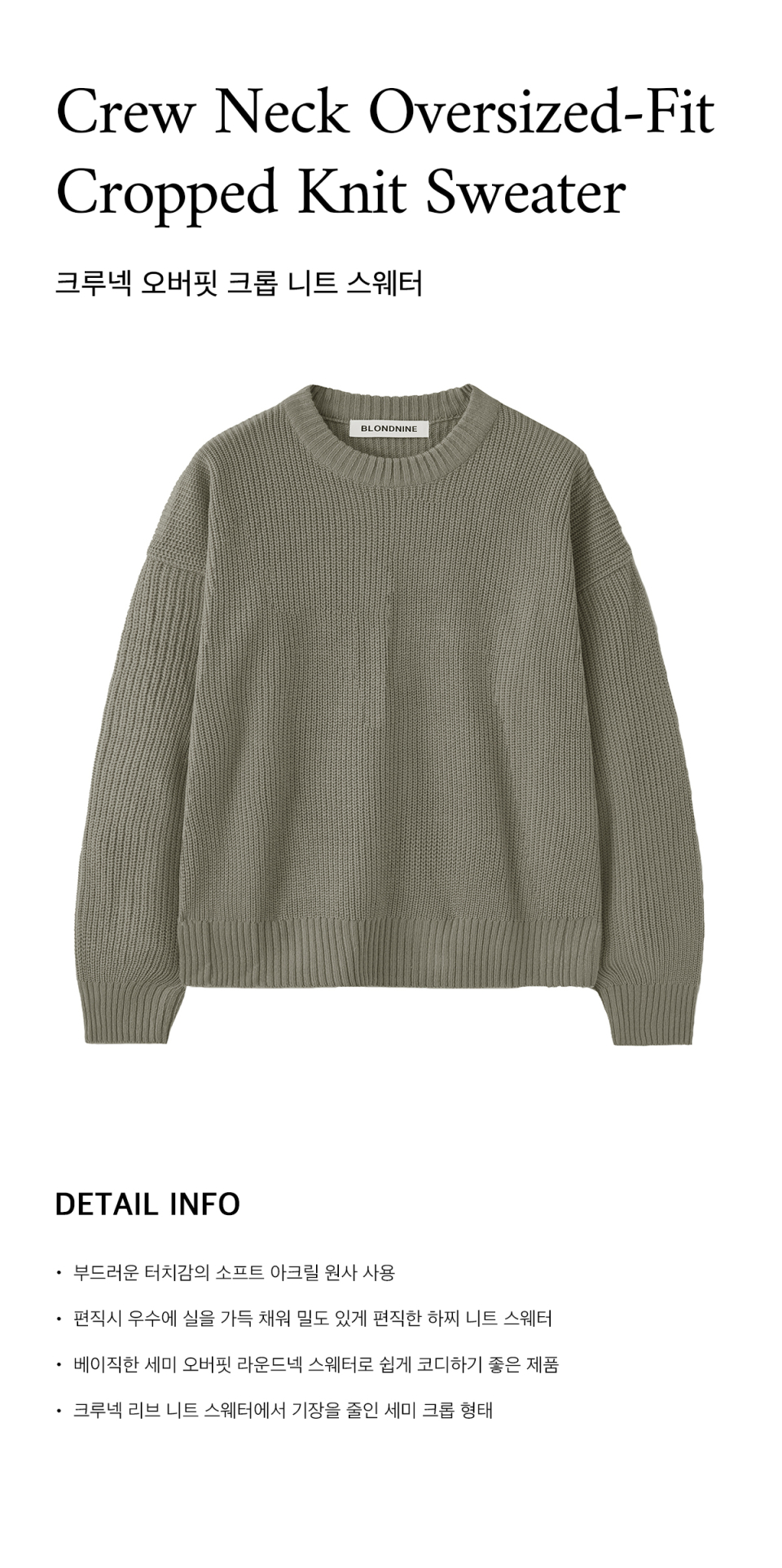 크루넥 리브 니트 스웨터_크롭 그레이