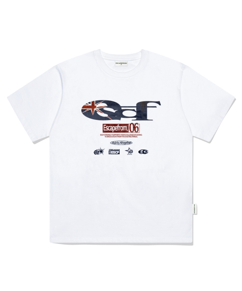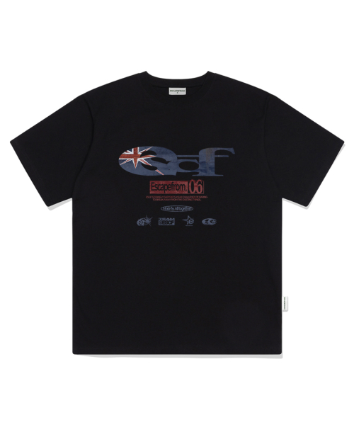 브리티쉬 빈티지 ESCF 로고 콜라주 프린트 오버핏 반팔티 블랙