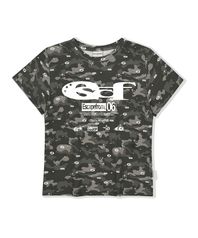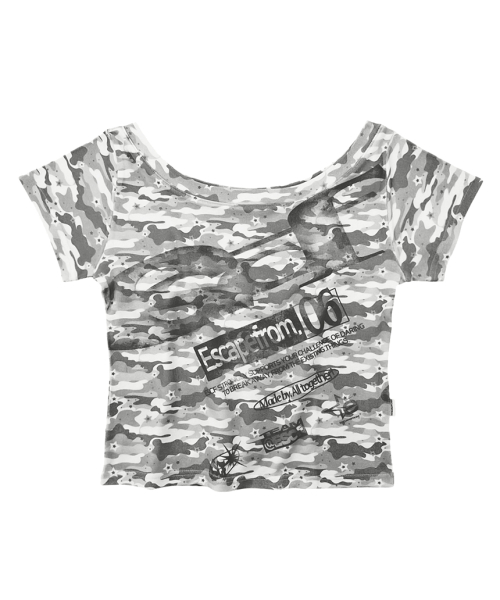ESCF 로고 콜라주 앤드 로고플레이 카모 풀프린트 슬림핏 반팔티